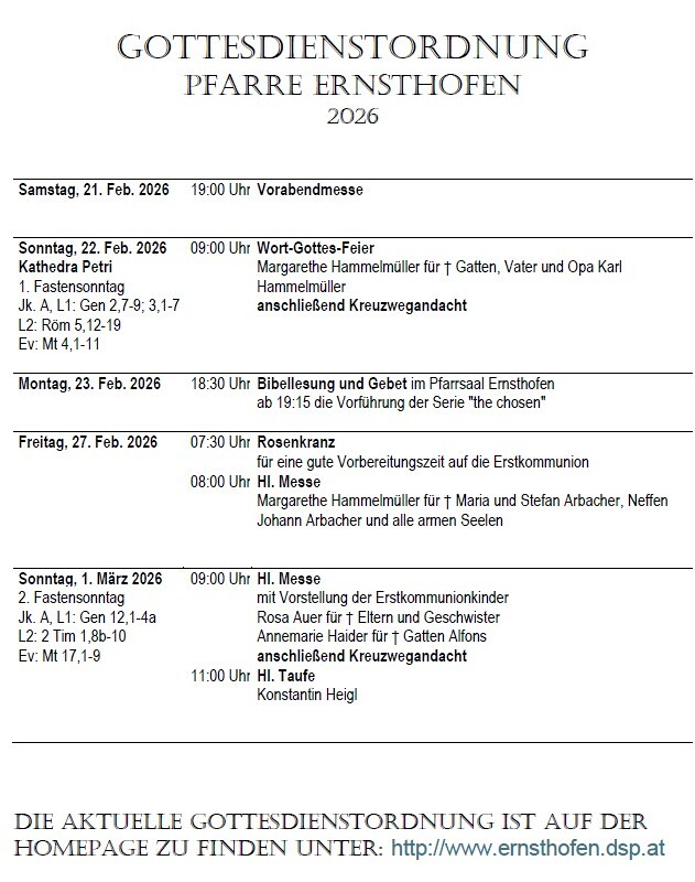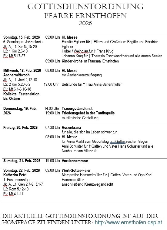 Gottesdienstordnung 15. - 22. Februar 2026