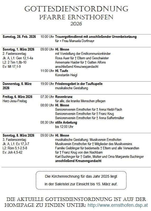 Gottesdienstordnung 28. Feb. - 8. März 2026