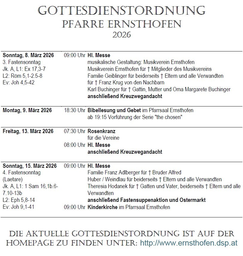Gottesdienstordnung 8. - 15. März 2026