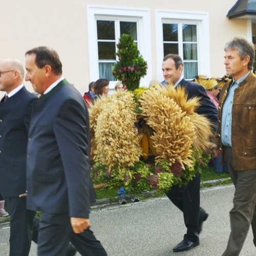Nach der Segnung der Erntekrone, die heuer von Altenrath, Gaissing und Weindlau wunderbar geschmückt wurde, begleitete die Musik den Festzug in die Kirche.