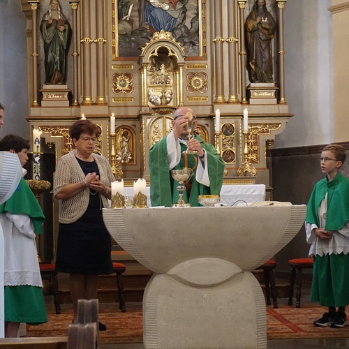 Beim Sonntagsgottesdienst am 02.06.2024 feierte unsere Pfarrgemeinde das Fest der Ehejubiläen. Msgr. Johann Zarl zelebrierte den Festgottesdienst, dankte in berührenden Worten für ihr gelebtes Zeugnis, dass Ehe auch heute so viele Jahre gelingen kann und spendete den Paaren einzeln den Segen.