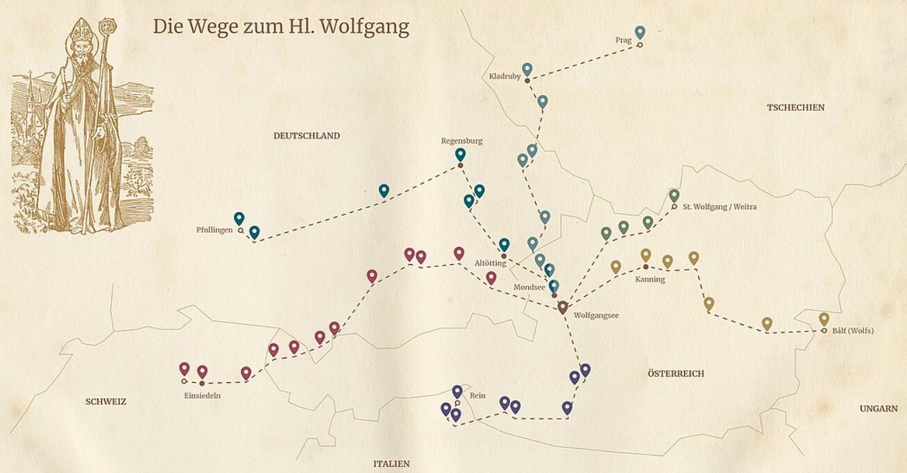 Informationen zum Jubiläum und den Wolfgangwegen finden sie hier: www.wolfgangweg.eu/