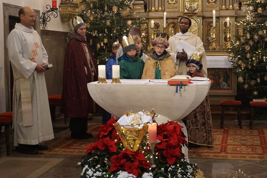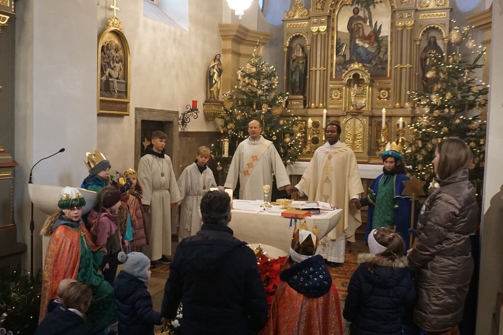 Höhepunkt der Sternsingeraktion war der feierliche Gottesdienst am 6. Jänner, der von Pfarrer Rupert Grill und Diakon Fritz Eglseer zelebriert wurde. Die Sternsinger gestalteten diesen Gottesdienst mit und brachten so ihre Botschaft auch in die liturgische Feier ein.