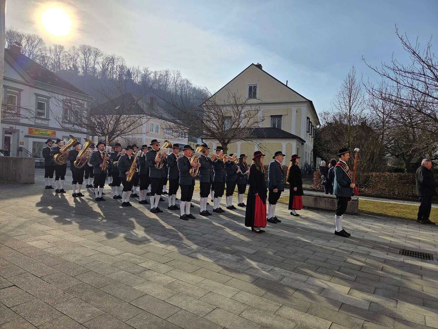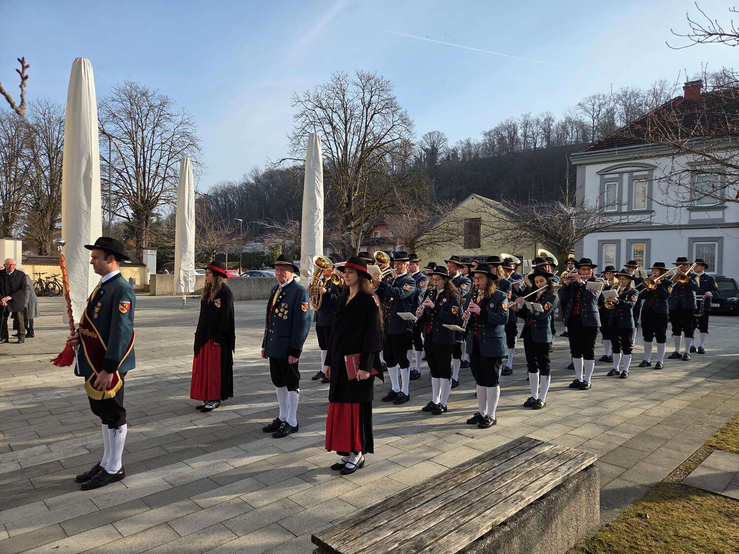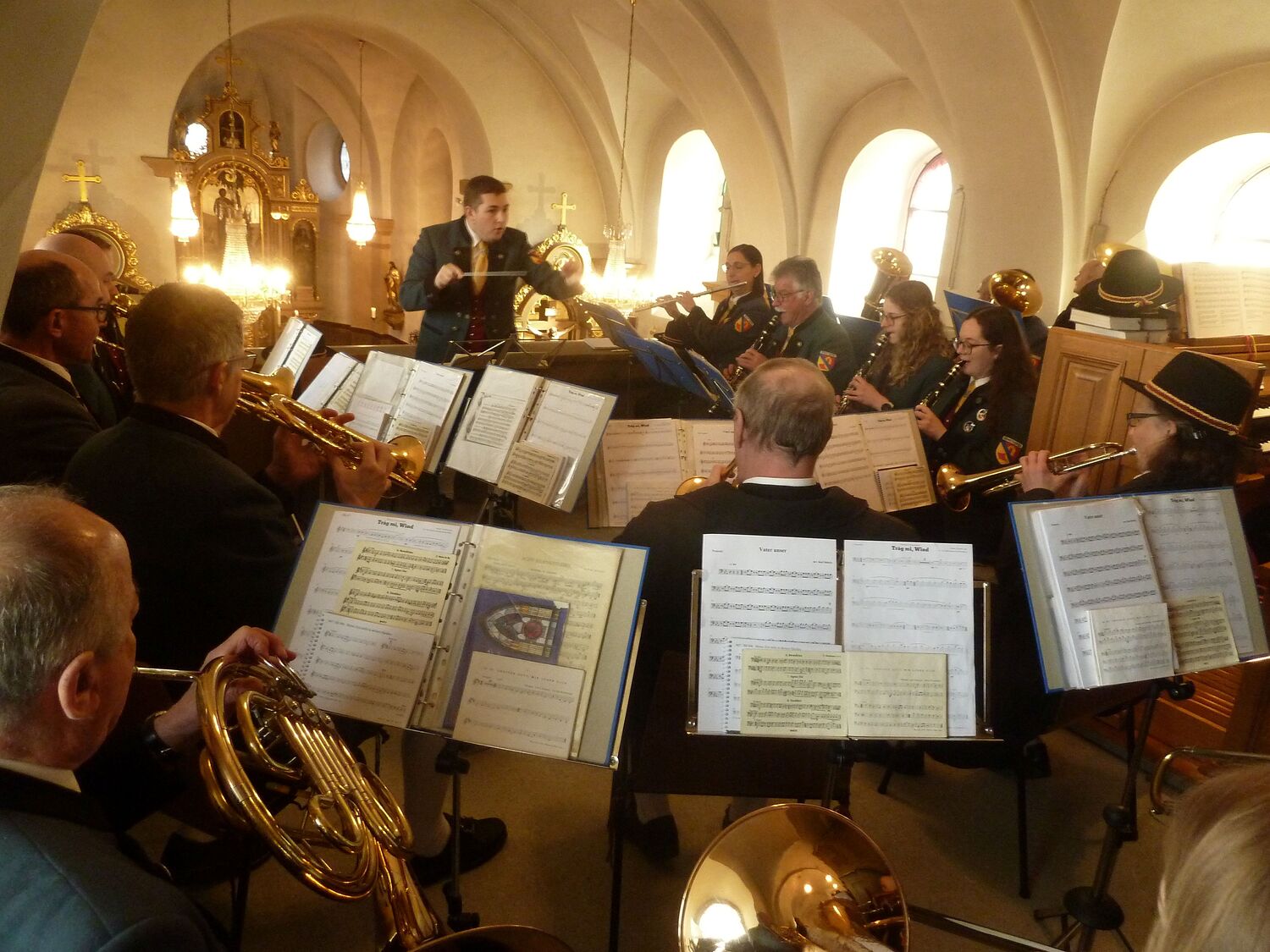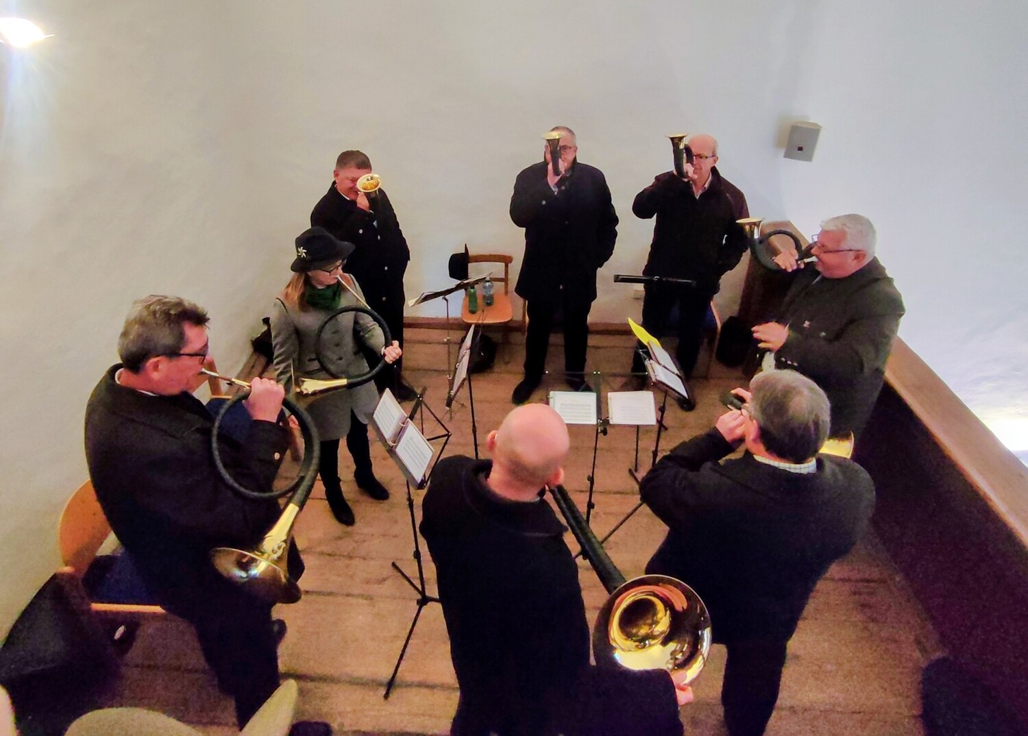 Vor der Kirchentüre wurden wir empfangen von den Turmbläsern des Musikvereins.