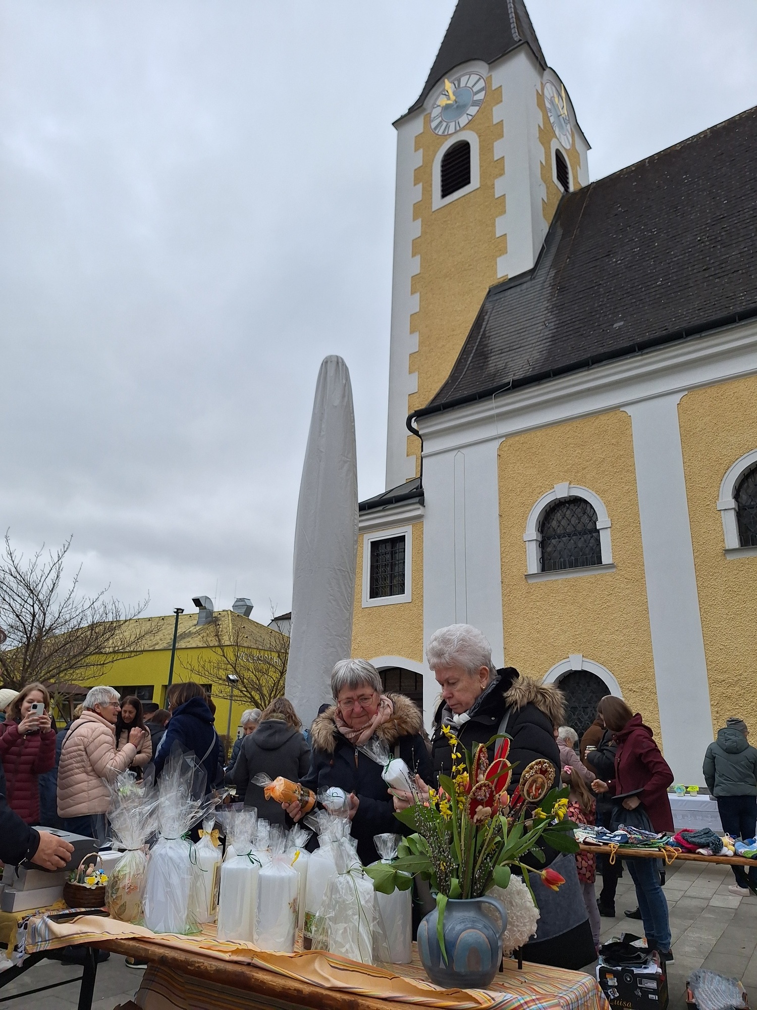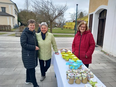 Nach der Messfeier wurde am Kirchenplatz warmer Tee ausgeschenkt und für die Caritas der Sonnentor Glückstee verkauft.
